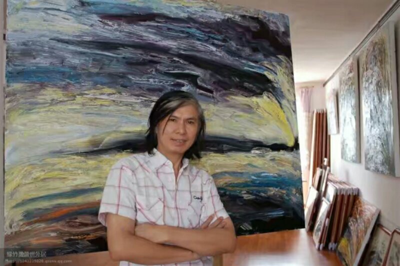 纵横于书法、国画、油画、水粉、瓷艺等。艺术表现手法多样,常游走于抽象和具象之间,尤其在山水题材上