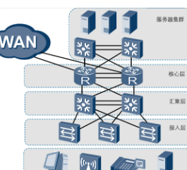设备包括路由器、防火墙、核心层交换机等,相当于公司架构的管理高层。