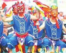 2、宗教信仰:傩戏是一种兼具宗教意义与娱乐性质的表演艺术,其演出内容中融入了年节祭祀、神话传说,表达了人们对神灵、祖先等宗教信仰的敬畏和祈求。