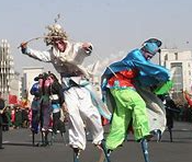 首先,高跷表演者需要具备较强的平衡能力和身体控制能力,以便在高跷上行走、跳跃等动作时能够稳定平衡。通常情况下,高跷表演者的脚部需要穿戴特制的高跷鞋,通过绑带固定高跷和脚的连接处,以确保动作的顺畅和安全性。