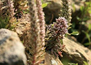 塔花瓦松是中国特有植物,属于景天科瓦松属的多年生草本植物。它的莲座叶呈线形,白色,边缘软骨质,花茎叶直立,最高可达30厘米,花序外形呈狭金字塔形,苞片生长在花梗的中部。