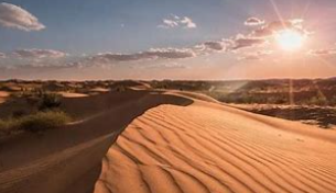 2、阿拉善沙漠位于中国的内蒙古自治区和甘肃省交界处,是中国最大的移动沙漠,面积约为113,900平方公里。它以其壮丽的沙丘景观和多样的生态系统而闻名。